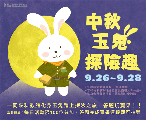 中秋節100位名額限定~免費闖關答題玩賓果拿好禮玩抽獎,台北科教館中秋A好康